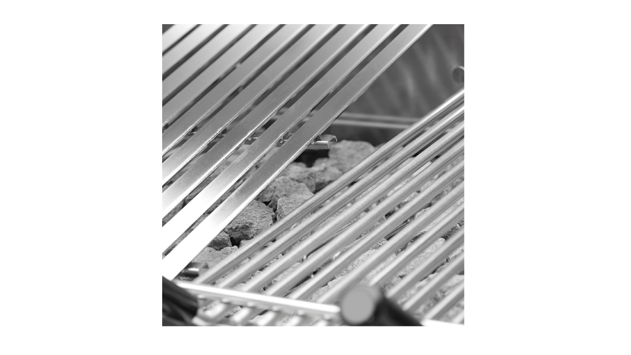 Las rejillas son de acero pavonado en negro acanaladas. Opción de rejilla en varilla.