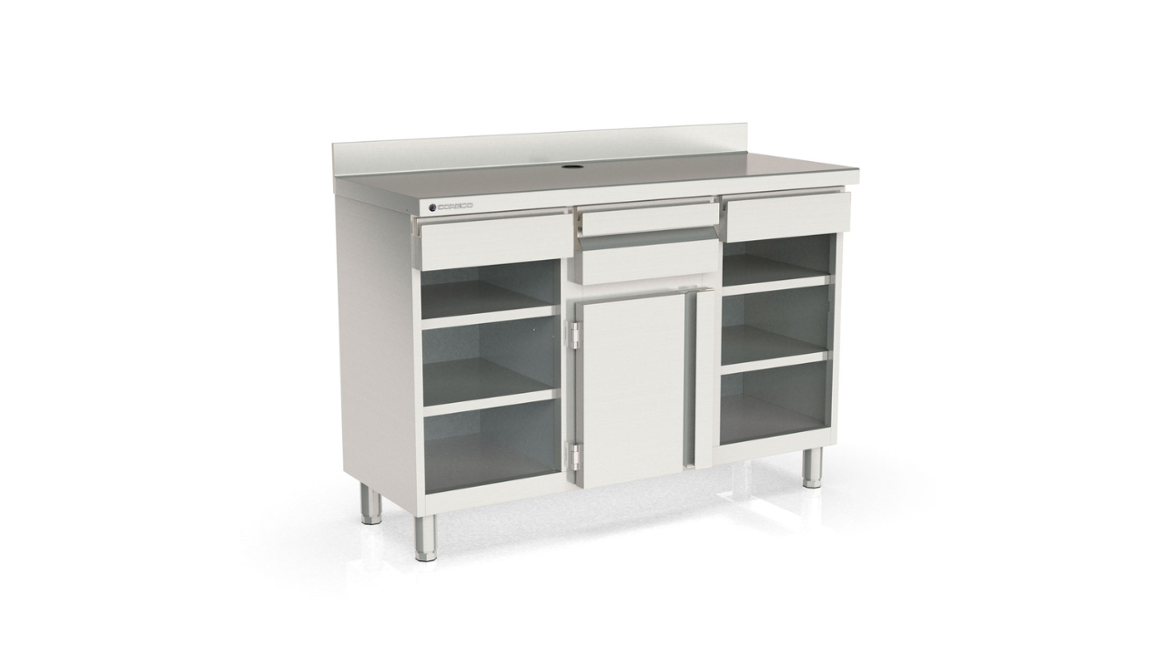 | Modelo | Dimensiones (mm) | Cajones | Tolva | Estantes | Puertas |