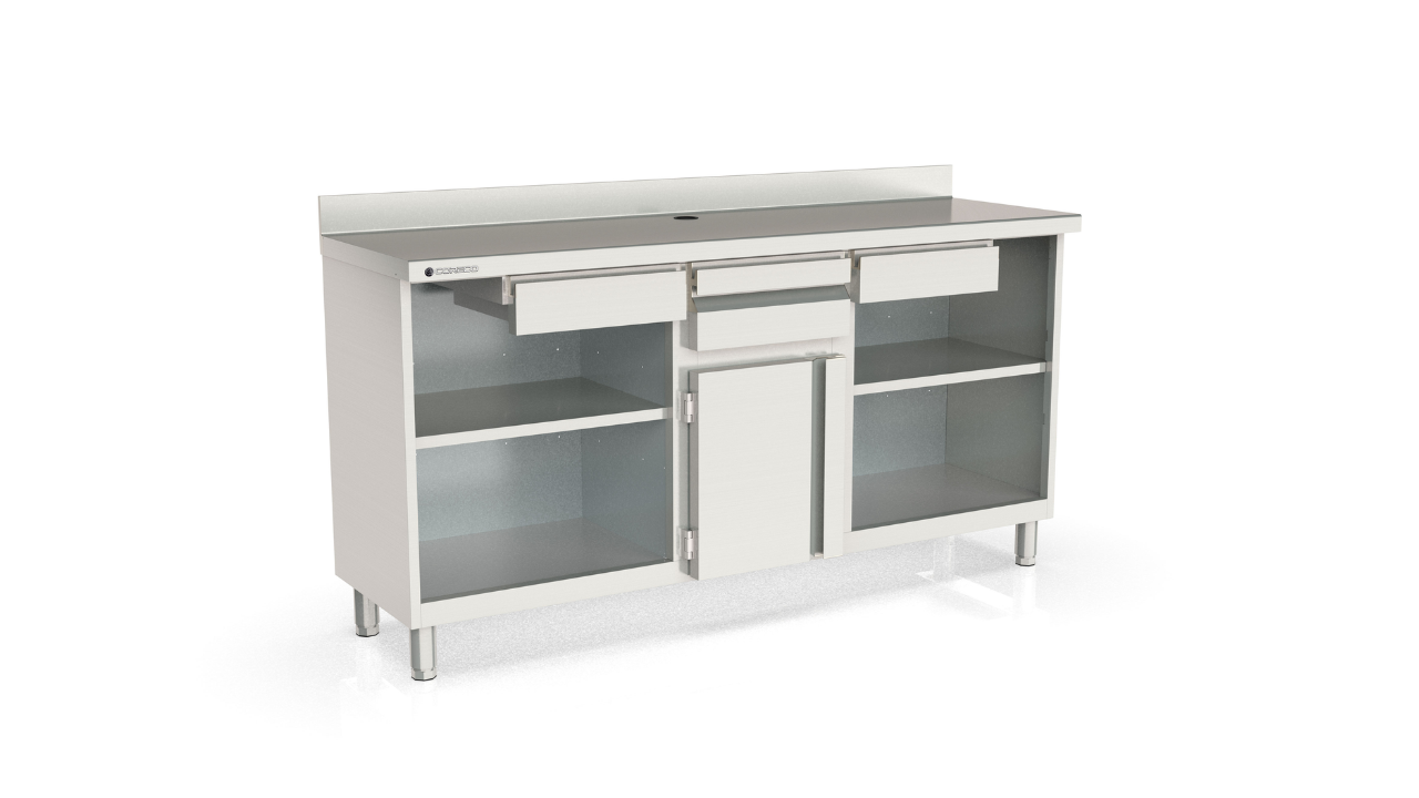 | Modelo | Dimensiones (mm) | Cajones | Tolva | Estantes | Puertas |