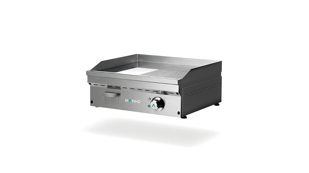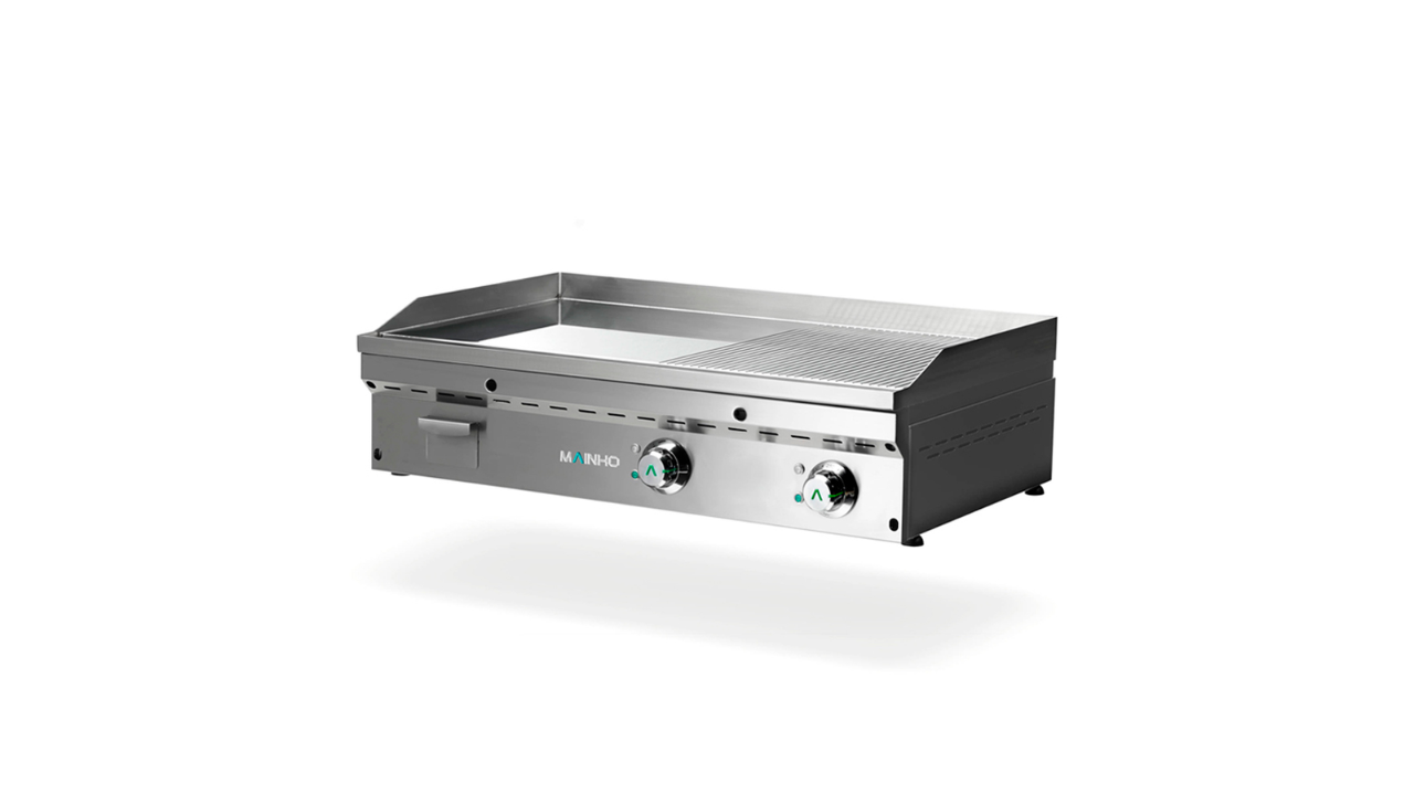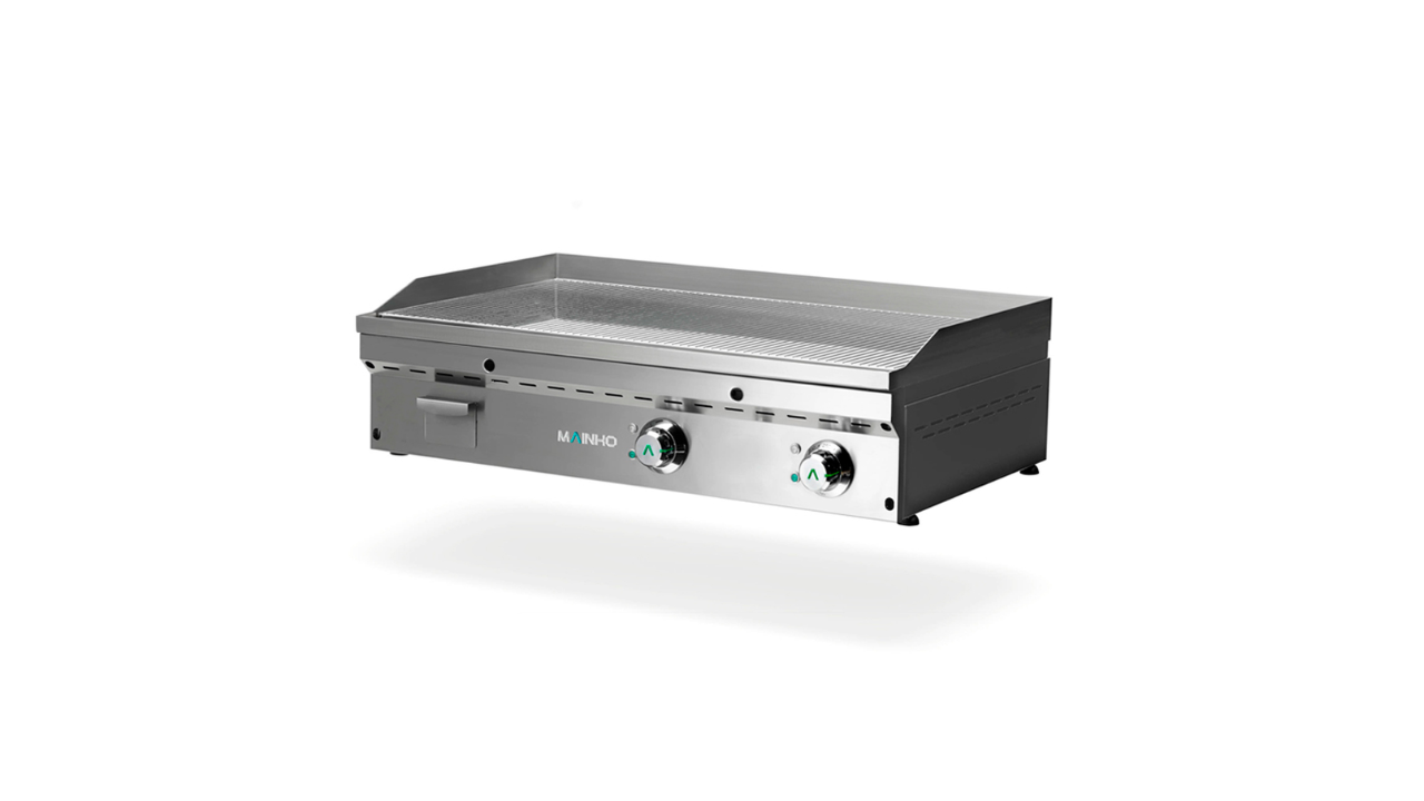 Los fry-tops híbridos se caracterizan por tener un funcionamiento de plancha y una potencia y medidas de fry-top. La salida de gases se produce en los laterales y en la parte trasera, igual que la plancha, pero su potencia es mucho mayor.
