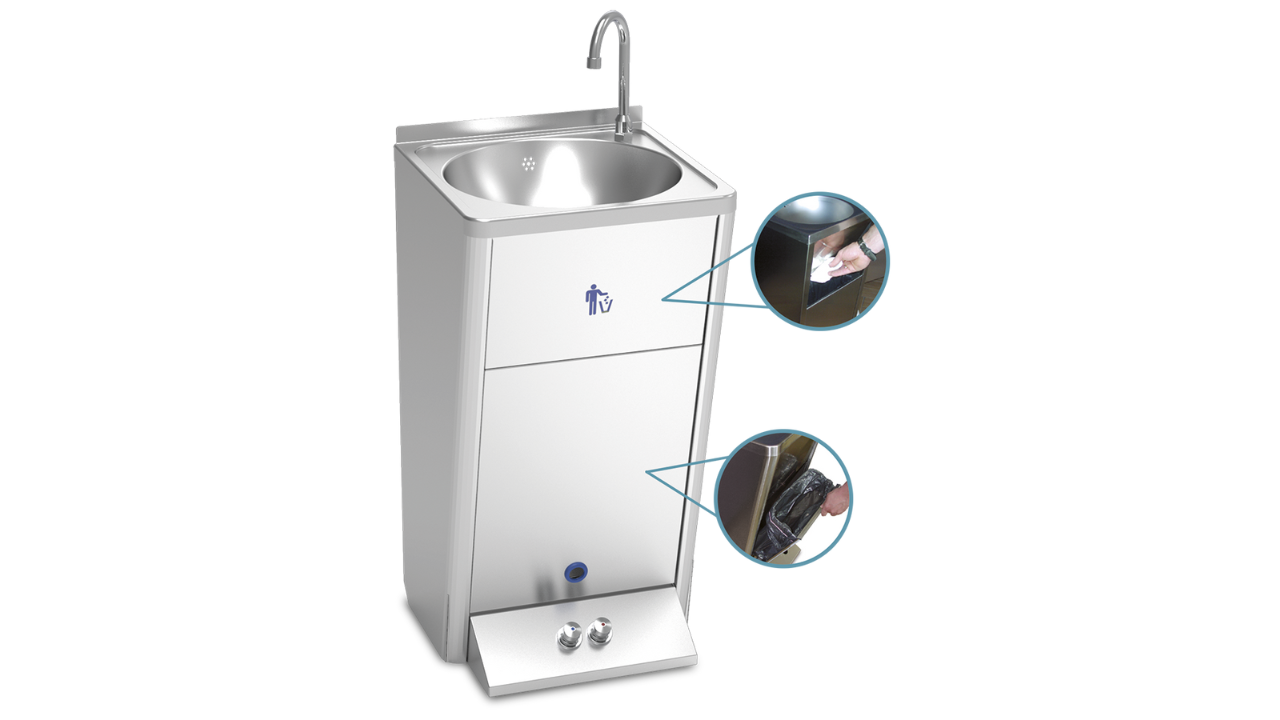 discreto acceso a papelera mediante trampilla basculante.Mediante una bomba eléctrica y un calentador