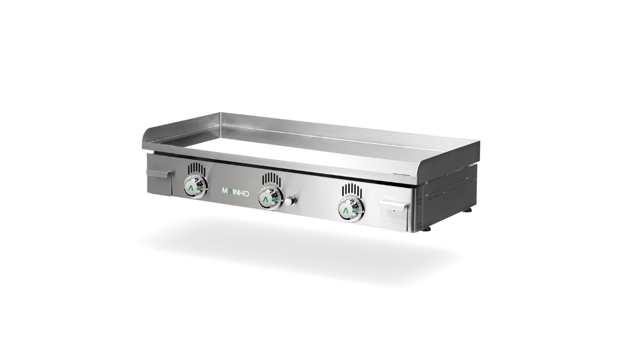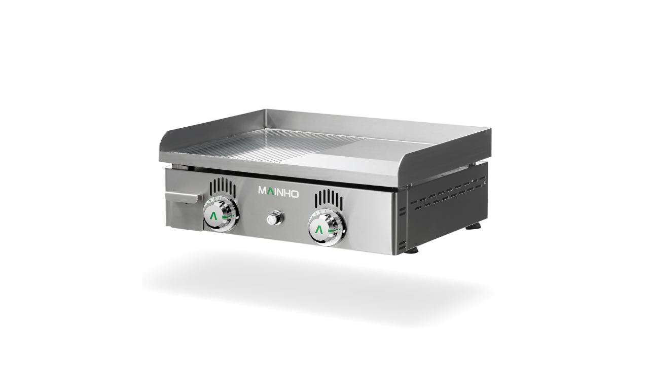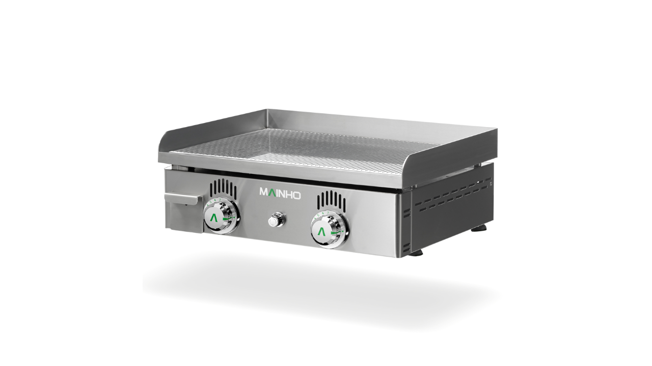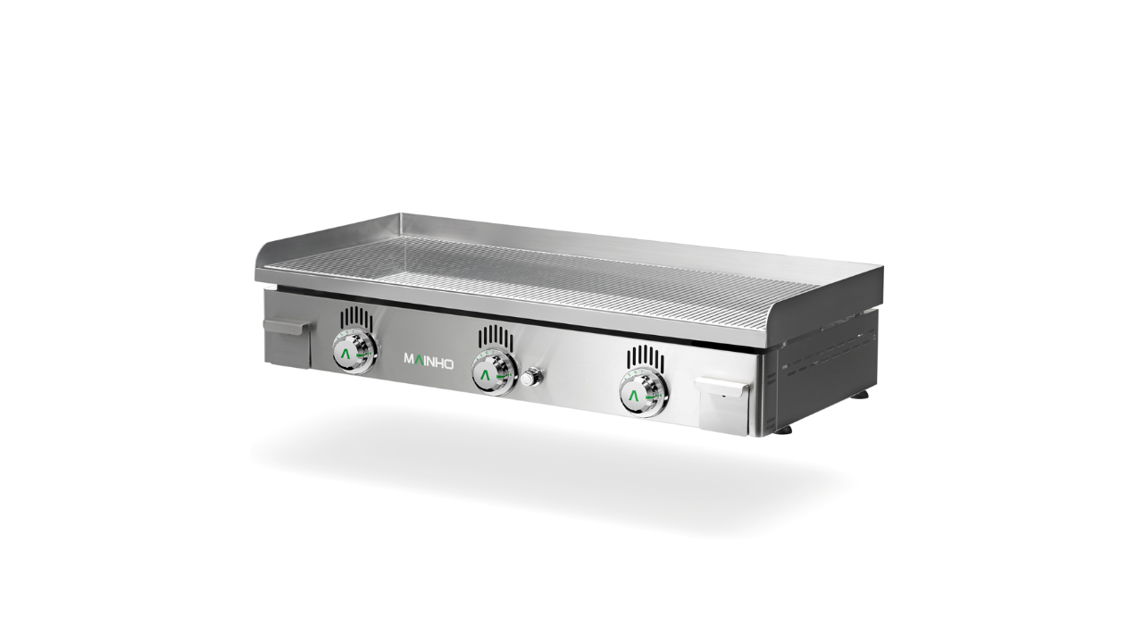 Plancha industrial de alto rendimiento construida completamente en acero inoxidable.