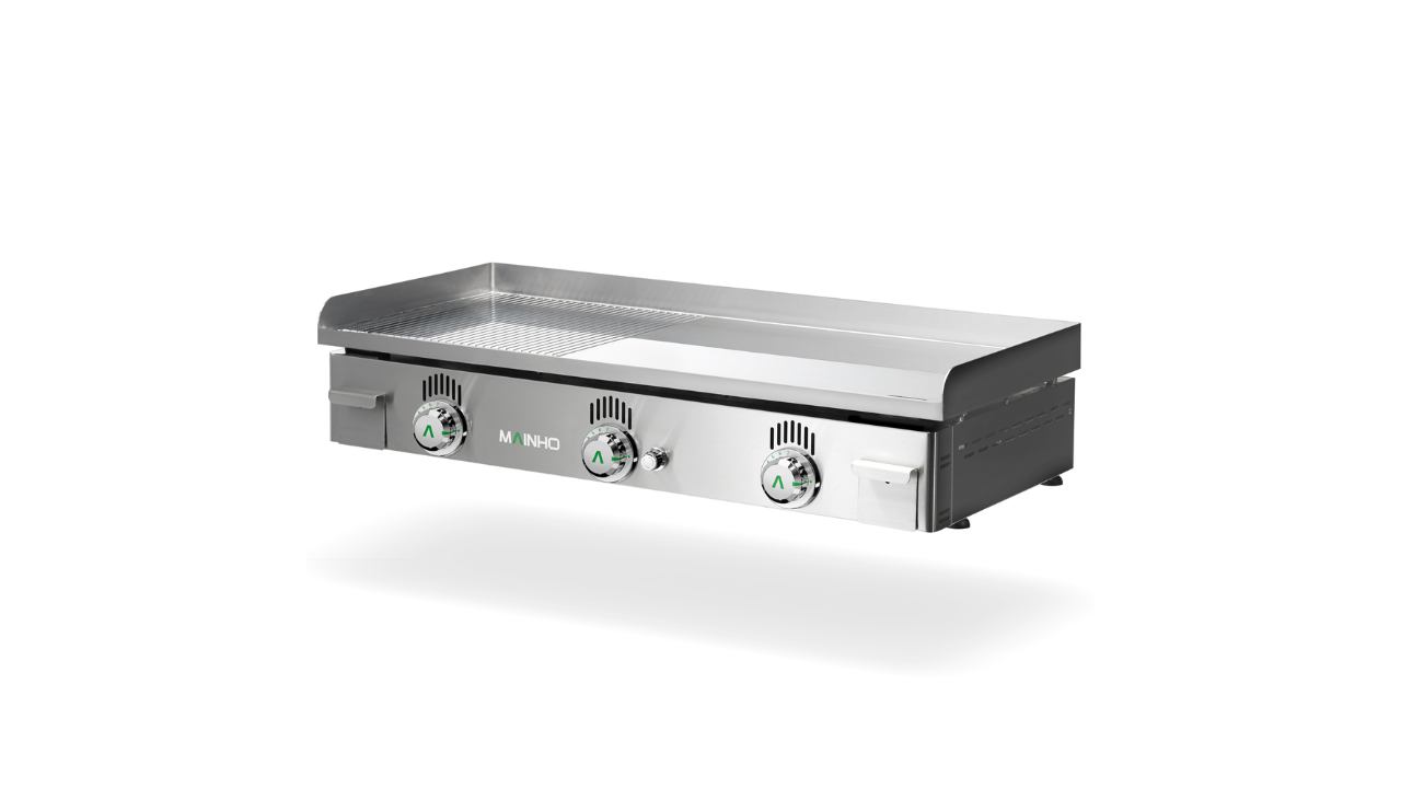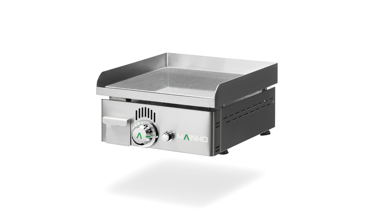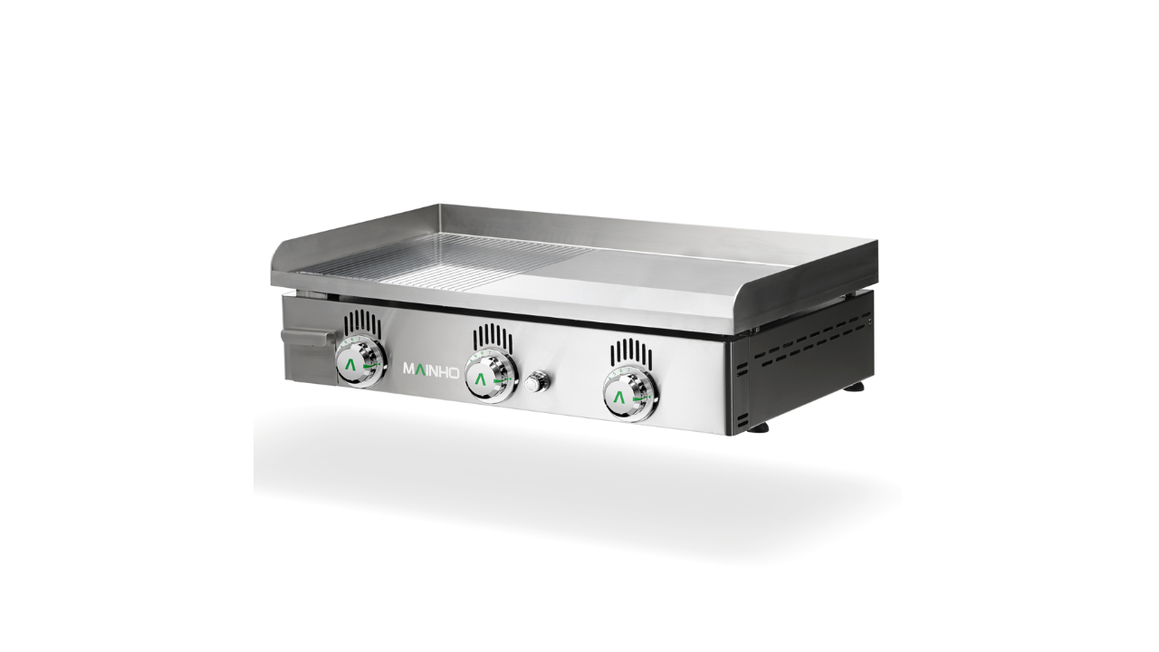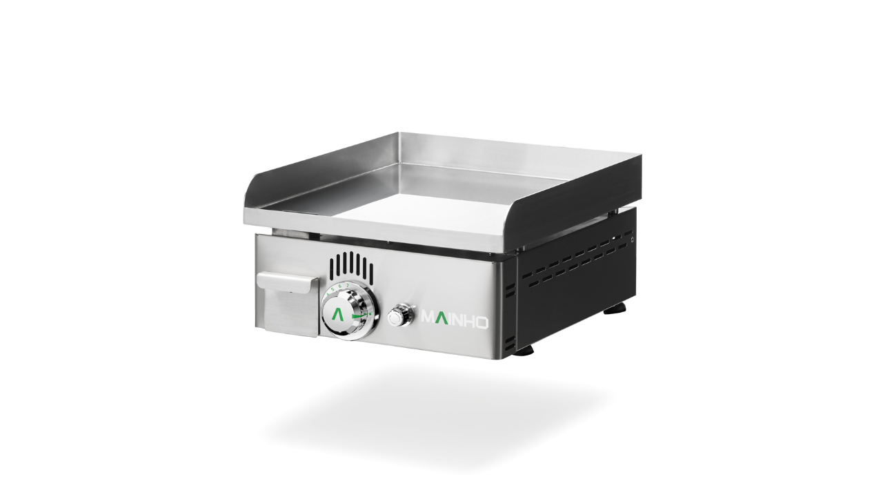 Plancha industrial de alto rendimiento construida completamente en acero inoxidable.